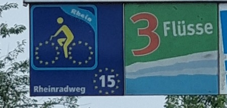 Die Zeichen des EuroVelo 6 sind uns noch in guter Erinnerung. Wir sind 2019 diesen Schildern nach Westen bis zum Atlantik gefolgt. Dieses Jahr fahren wir (einStück) in östlicher Richtung. Auf der deutschen Seite ist der Weg identisch mit dem Donau-Radweg.