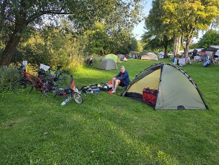 Über Speyer - Schifferstadt - Meckenheim kommen wir zum Ziel unserer Radtour nach Wachenheim, wo wir auf dem Campingplatz unser Zelt für zwei Nächte aufstellen.